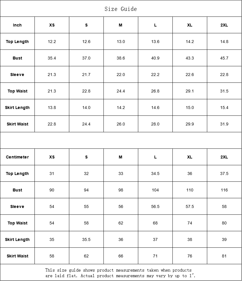 Skirt Length | 35 | 35.5 | 36 | 37 | 38 | 39 |